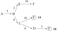 Путь из A в F, проходящий через вершины BCD, короче пути, проходящего через вершины BC (18 < 19). Следовательно, длина кратчайшего пути между пунктами A и F, проходящего через пункт C, равна 18.