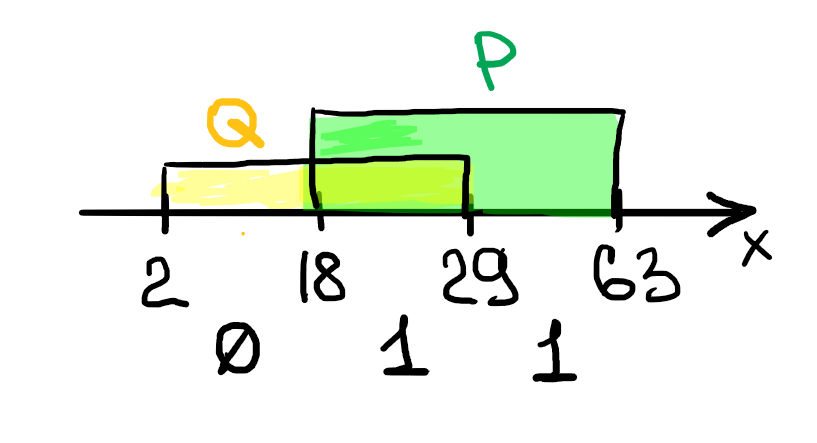 2) Строим числовую прямую и отмечаем на ней значения известной части (¬Q / P)