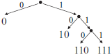 На основе дерева получим кодовые слова 0, 01, 110 и 111.