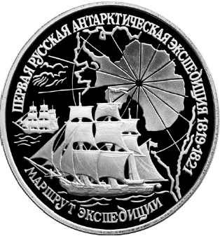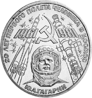 Какие из представленных монет посвящены юбилеям событий, отмечавшимся в тот период времени, который отражён на карикатуре? В ответе запишите две цифры, которыми обозначены эти монеты.