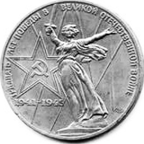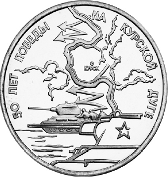 Какие из представленных монет посвящены юбилеям событий, произошедших в годы руководства страной политического деятеля, при котором выпущена данная почтовая марка? В ответе запишите две цифры, которыми обозначены эти монеты.