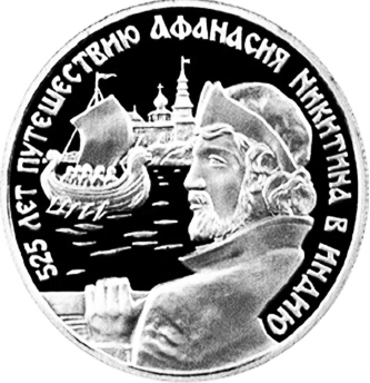 Какие из представленных монет посвящены современникам государственного деятеля, изображённого на марке? В ответе запишите две цифры, которыми обозначены эти монеты.