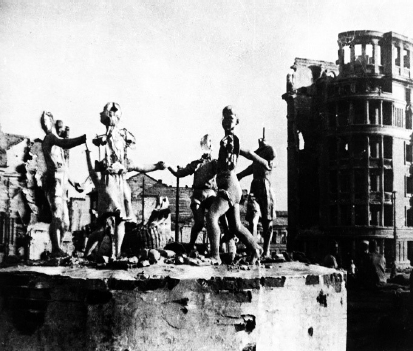 Для начала определим содержание каждого изображения. На первой фотографии изображен фонтан «Бармалей». Уцелевшая скульптура с танцующими детьми на фоне руин стала одним из символов Сталинградской битвы. На второй фотографии мы видим уцелевший фрагмент Брестской крепости. В третьем случае речь идет о Бранденбургских воротах в Берлине. А на четвертом снимке изображено разрушенное здание мельницы, включенной в состав музея-заповедника «Сталинградская битва».