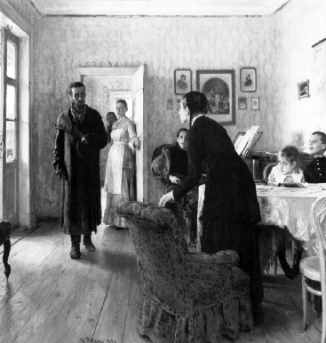 Под номерами 2 и 4 изображены картины Репина и Сурикова, которые также входили в «Товарищество передвижных художественных выставок».