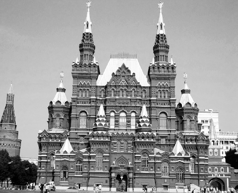 На 1 картинке представлен Государственный музей изобразительных искусств имени Пушкина, построенный в конце XIX — начале XX века. На 4 картинке представлен государственный исторический музей в Москве, построенный в XIX веке. Памятники архитектуру под цифрами 2 и 3 были воздвигнуты в XVII века, как раз когда происходили события, которым посвящена карта — то есть Переяславская Рада.