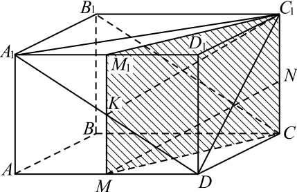 Проведём $C_1 K ||M N$. $K$ — середина отрезка $M M_1$ и середина отрезка $A_1 D$, значит, принадлежит искомому сечению, поэтому $C_1 K$ лежит в плоскости сечения