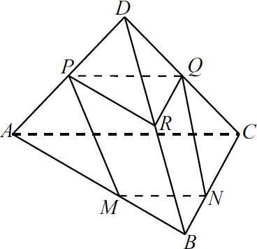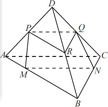 На рёбрах $AB$ и $BC$ треугольной пирамиды $DABC$ отмечены точки $M$ и $N$ так, что $AM:MB=CN:NB=2:1$. Точки $P$ и $Q$ — середины рёбер $DA$ и $DC$ соответственно.