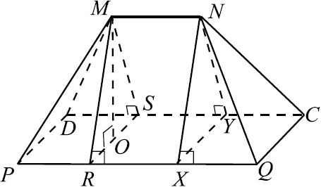 б) 1) Пусть $MR ⊥ PQ, MS ⊥ CD, NX ⊥ PQ, NY ⊥ CD$.