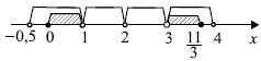$x ∈ (−0.5;1)∪(1;2)∪(2;3)∪(3;4)$.
