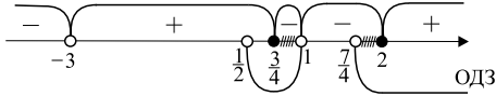 ОДЗ: ${table2x − 1 > 0; 2x − 1 ≠ 1; 4x^2 − 11x + 7 > 0;$ ${tablex > {1}/{2}; x ≠ 1; [tablex < 1; x > {7}/{4};$ $x ∈({1}/{2}; 1)∪({7}/{4}; +∞)$