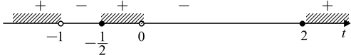 Получим $t ∈ (−∞; -2] ∪ (-{3}/{2}; 2].$