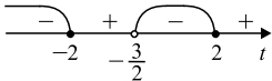 ${2t^2 − 8}/{2t +3} ≤ 0, {(t − 2)(t + 2)}/{t +{3}/{2}} ≤ 0.$