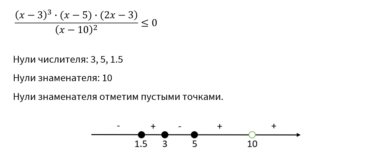 Таким образом, решение исходного неравенства: ${3}/{4} < x < 1; x ≥ {10}/{7}$.
