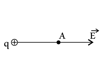 На рисунке изображён точечный электрический заряд. Как направлена относительно рисунка (вправо, влево, вверх, вниз, к наблюдателю, от наблюдателя) напряжённость поля заряда в точке A? Ответ запиши