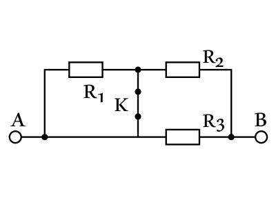 Перечертим рисунок в виде и обозначим резисторы $R_1, R_2,R_3$ для удобства пояснение:
